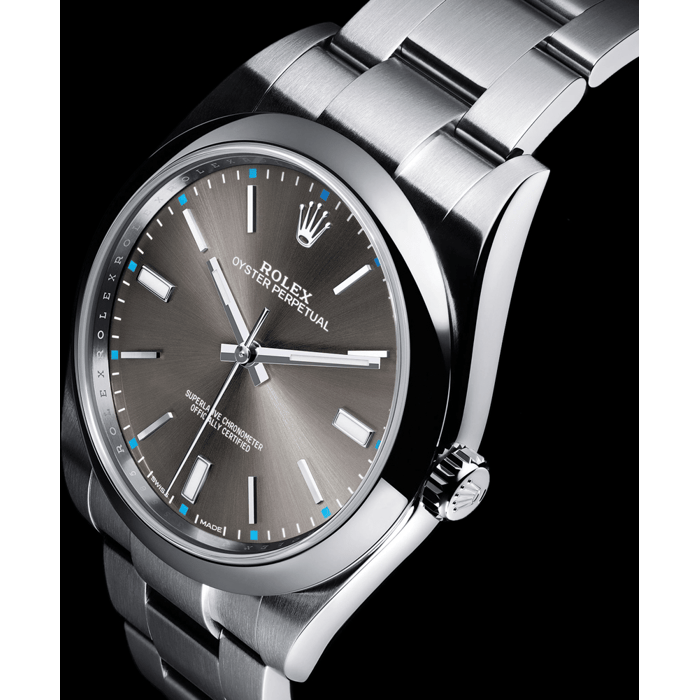 The Oyster Perpetual is the heart of the Rolex brand. One of the company’s earliest creations, the Oyster Perpetual brings together two incredibly important technologies and laid the groundwork for all of the historic and modern Rolex watches. In all models, the watches just have three hands: hours, minutes and center seconds. It’s wound using the Twinlock screw-down crown, is paired with the Oyster bracelet and Oysterclasp fastener, and has Chromalight for lume. This is what makes the Oyster Perpetual so wearable. The are more than 30 iterations of the Oyster Perpetual, with varying colors, bezels, and sizes. Until recently, it was available in 26-31-34 and 36 mm sizes. This made the Oyster Perpetual a vintage sized watch until 2015, when they launched a 39 mm size and then the 41 mm in 2020.